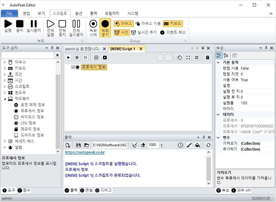 오늘은 프로세서 정보를 확인할 수 있는 액션에 대해서 알아보겠습니다.