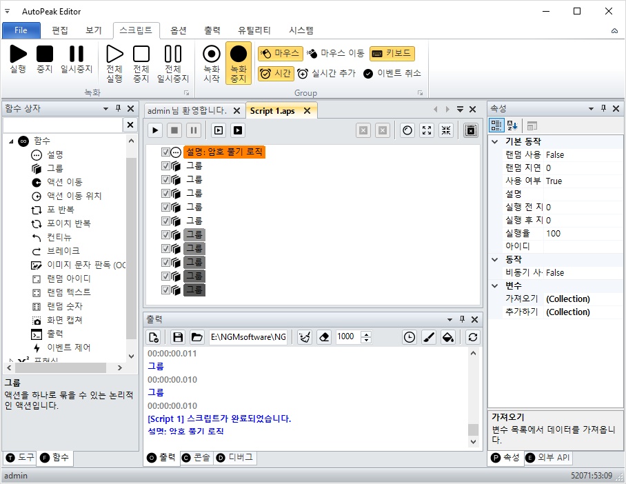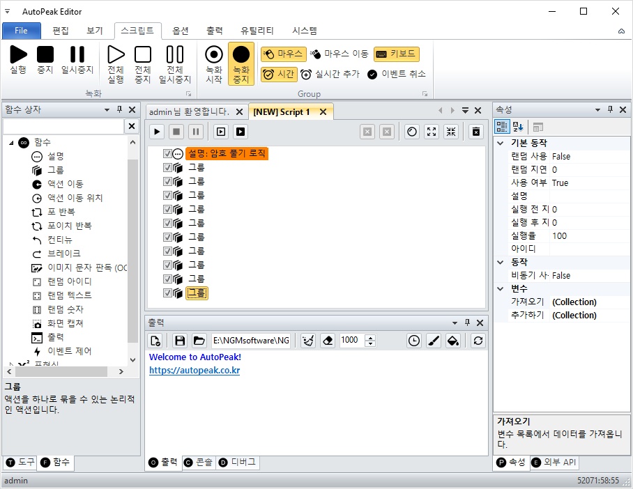 오늘은 잠시 머리도 식힐겸 특별한 기능은 없지만, 매크로 프로그램을 개발할 때 도움이 될 수 있는 액션을 알아보도록 하겠습니다.