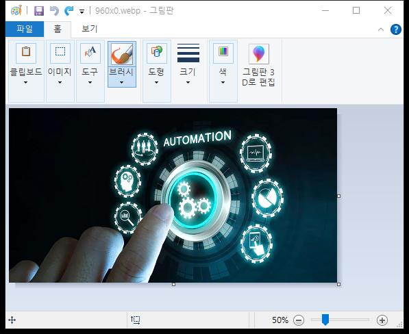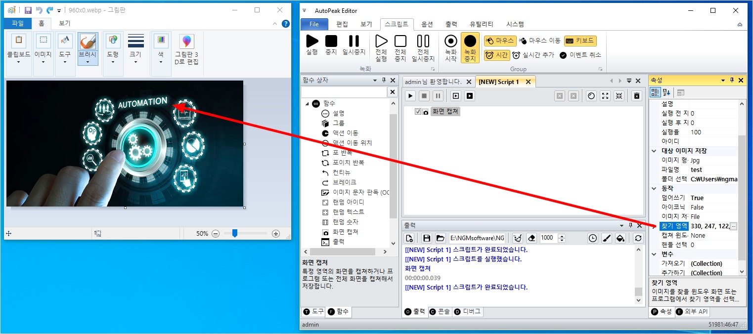 이번에는 그림판에 이미지를 하나 열어두었습니다. 아래 그림과 같이 찾기 영역을 이미지의 오토메이션으로 설정하세요.