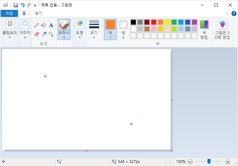 우선, 그림판에 오렌지색 점을 하나 찍어놓고, 테스트 스크립트를 만들어 볼께요.