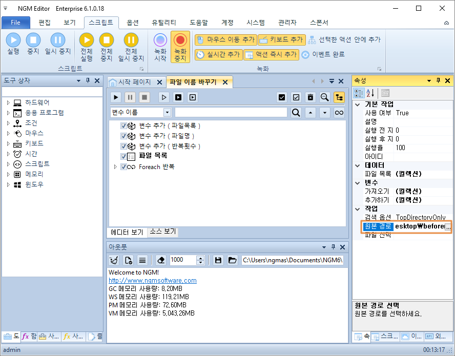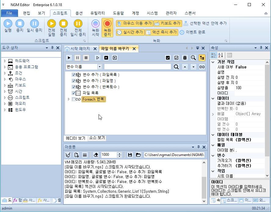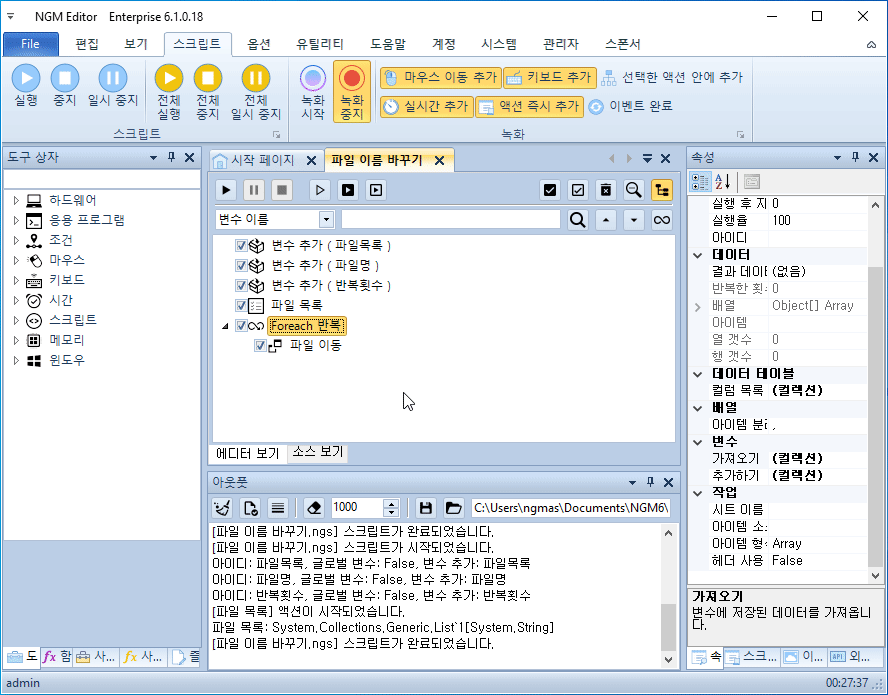 - 파일명: Foreach 반복 액션에서 배열에 저장된 파일명 저장