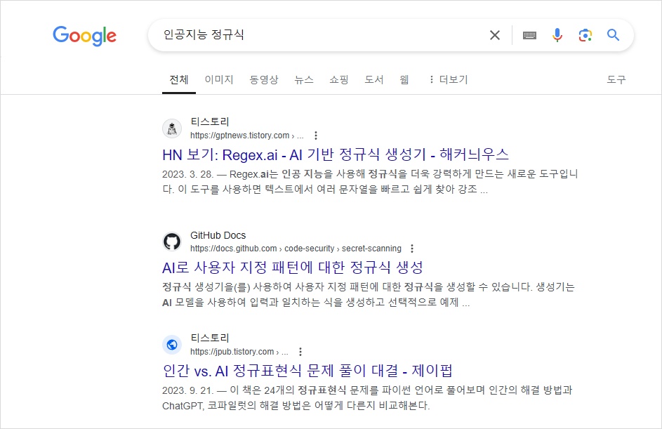 우선, 구글에 인공지능 정규식이라고 검색을 해볼까요?
