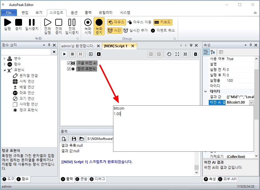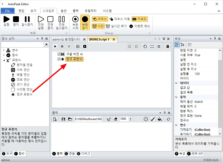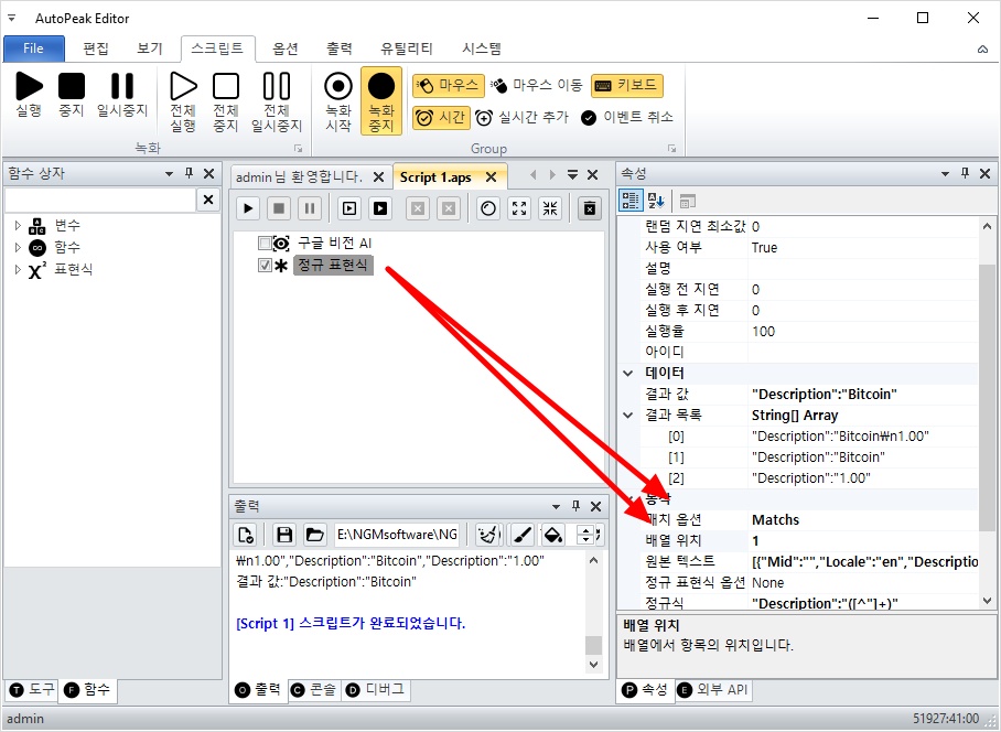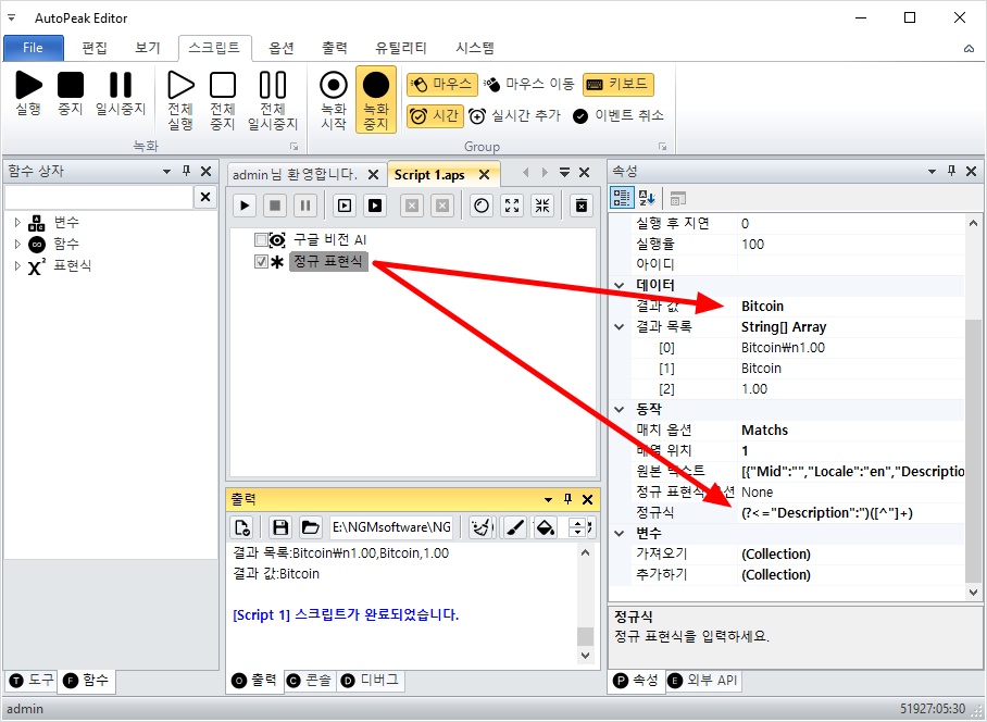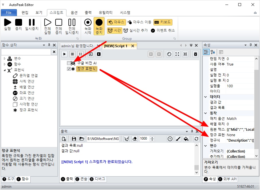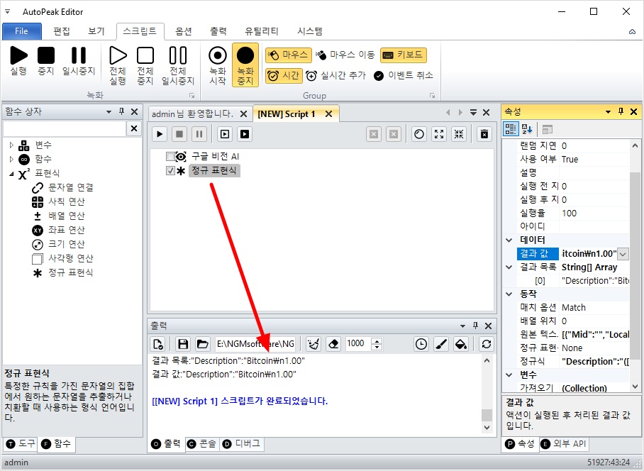 이제 오토픽 에디터의 정규식에 완성된 정규식을 붙여넣기하고 실행 해보세요.