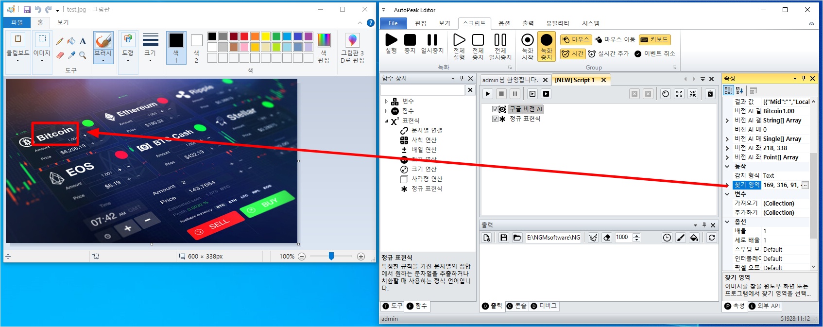 매크로를 실행하고 결과를 보면 아래와 같이 비트코인뿐만 아니라 아래 숫자도 인식이 된것을 알 수 있습니다.