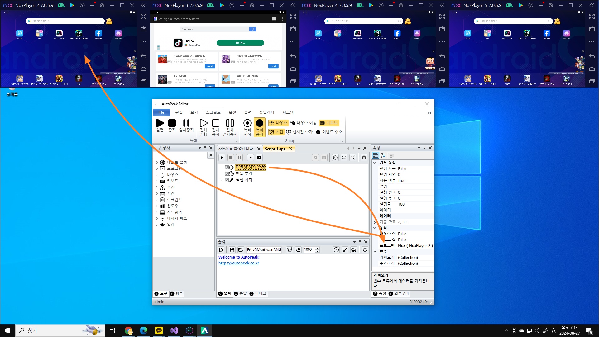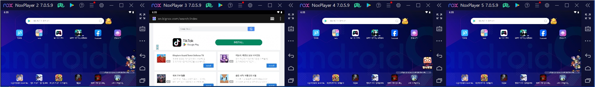 테스트를 위해 녹스 앱플레이어를 4개 실행했습니다.