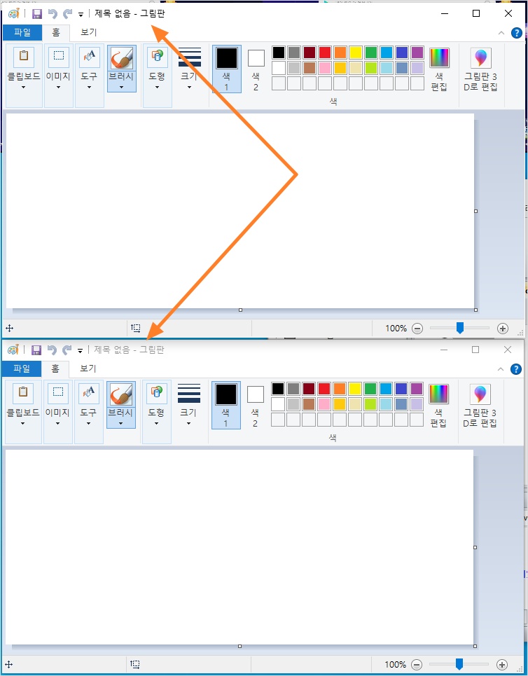 아래는 비활성 모드에서 아이콘의 위치입니다. 프로그램의 매인이 아닌 콘트롤 영역부터 계산이 된다는걸 이해해야 합니다.