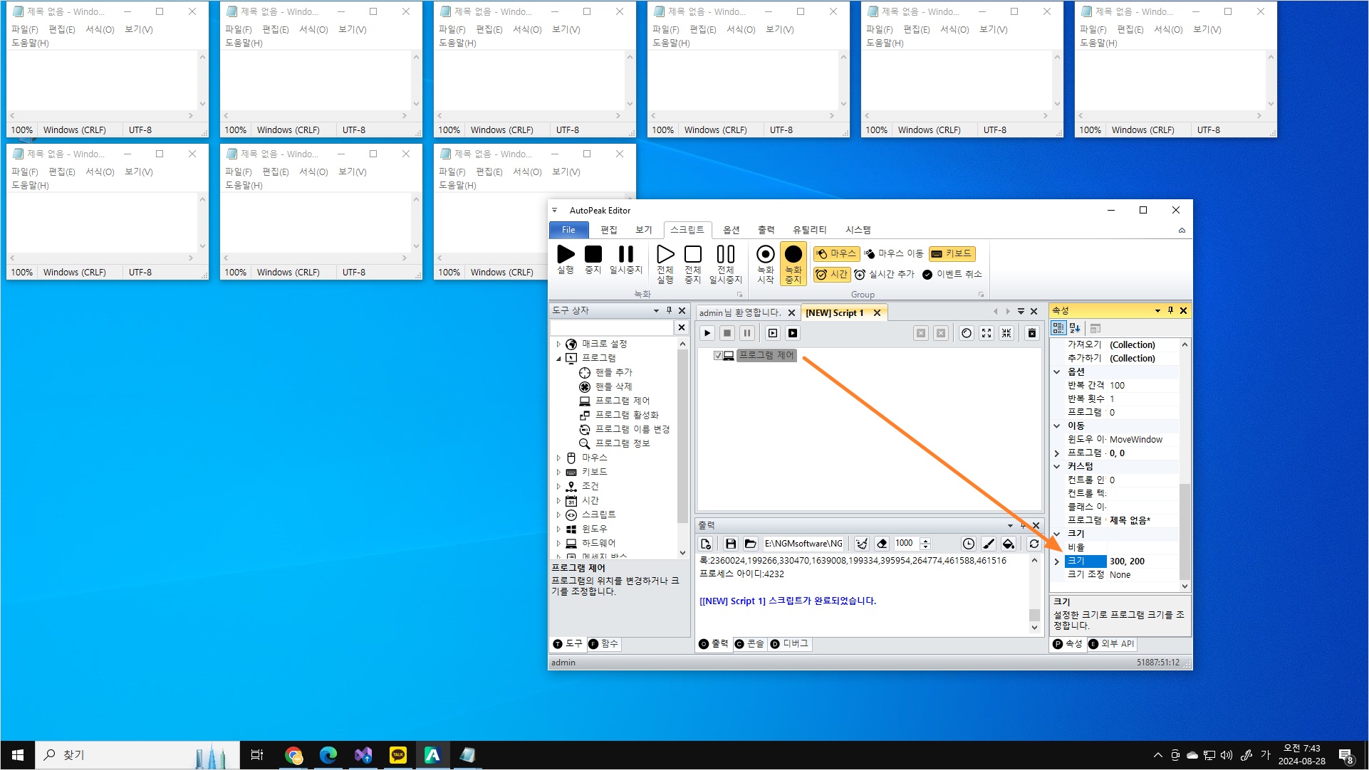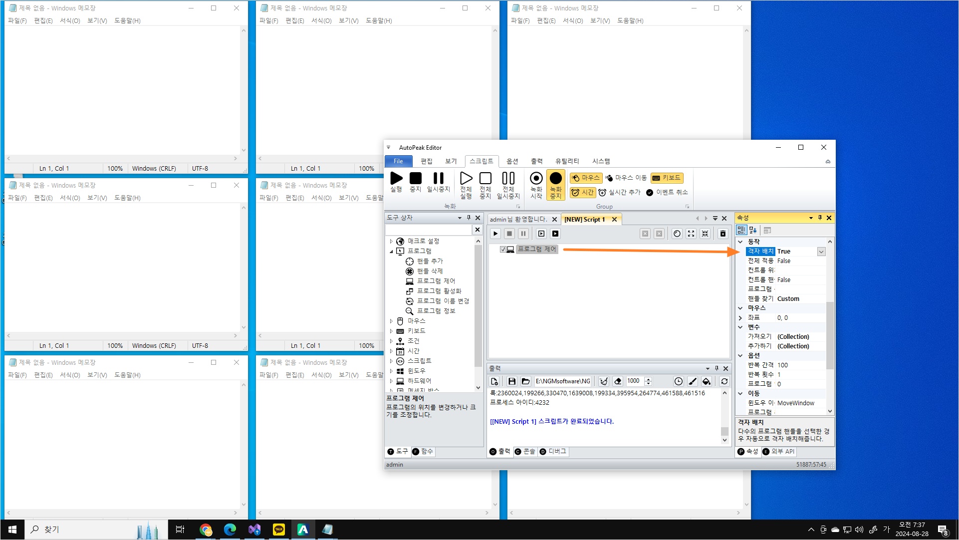 매크로를 실행하면 아래 그림과 같이 모든 메모장이 윈도우의 좌측 상단에 정렬됩니다.