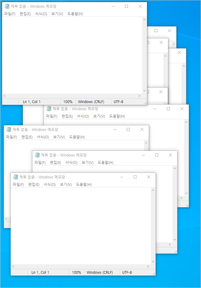 윈도우 바탕화면에 메모장을 9개정도 열었습니다.