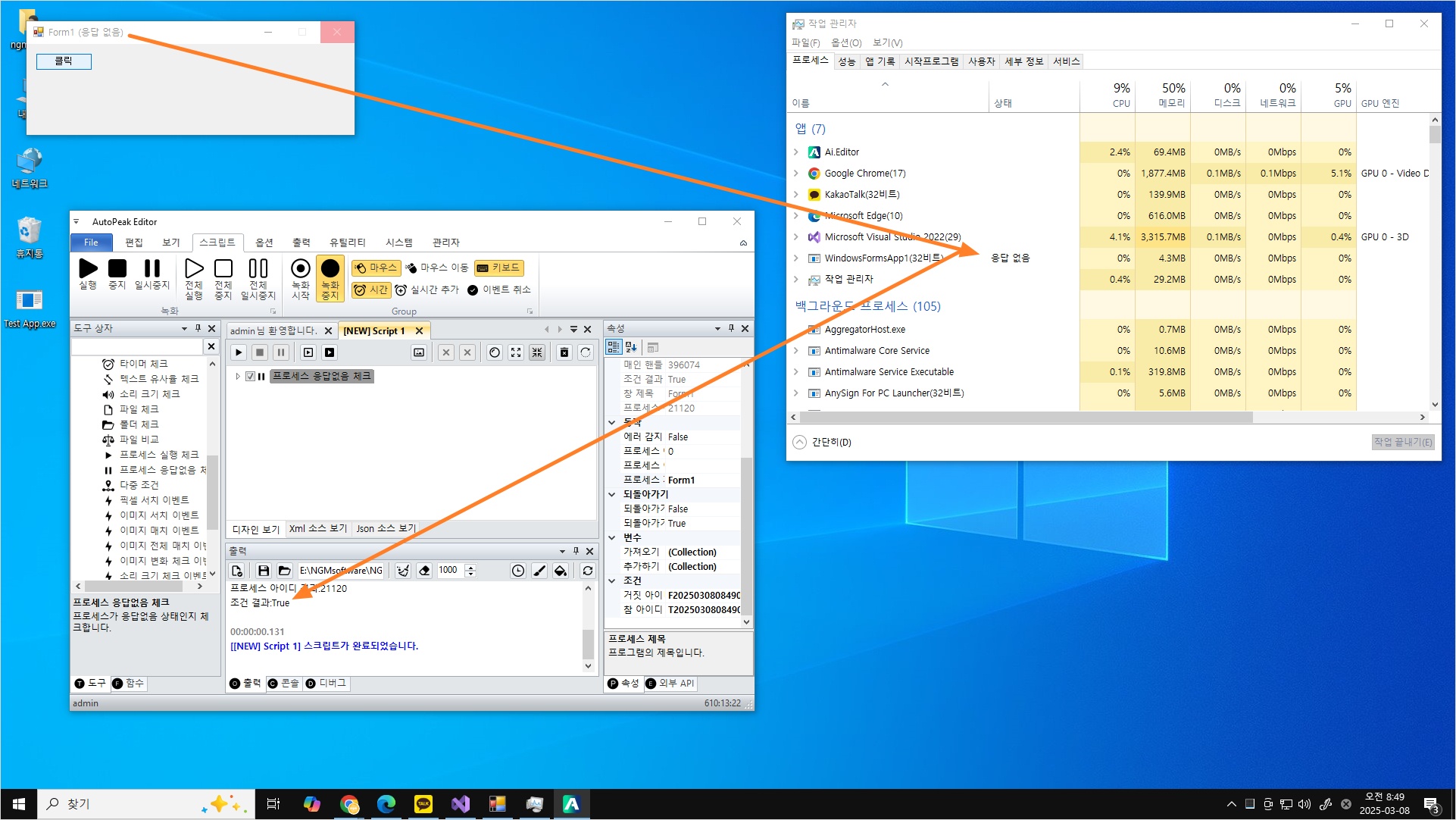 이제 매크로를 실행하면 응답없음 상태의 프로그램이 강제로 종료됩니다.