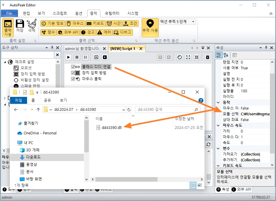 위에서 다운로드 받은 클래스 디디 모듈의 압축을 풀고, dd43390.dll 라이브러리를 선택하세요.