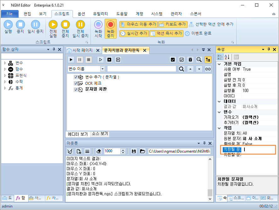 문자열 치환 기능은 OCR뿐 아니라 다양한 자동화 시나리오에서 활용됩니다.