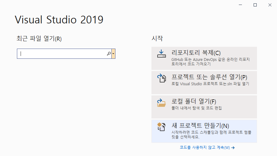 디자이너 설치 파일을 받은 후 [ 여기 ]를 참고해서 컴퓨터에 설치 해주세요. 그리고, [ Visual Studio도 설치 ]도 함께해야 합니다. 비주얼 스튜디오 관리자 권한으로 실행한 후 "새 프로젝트 만들기"를 클릭 하세요.