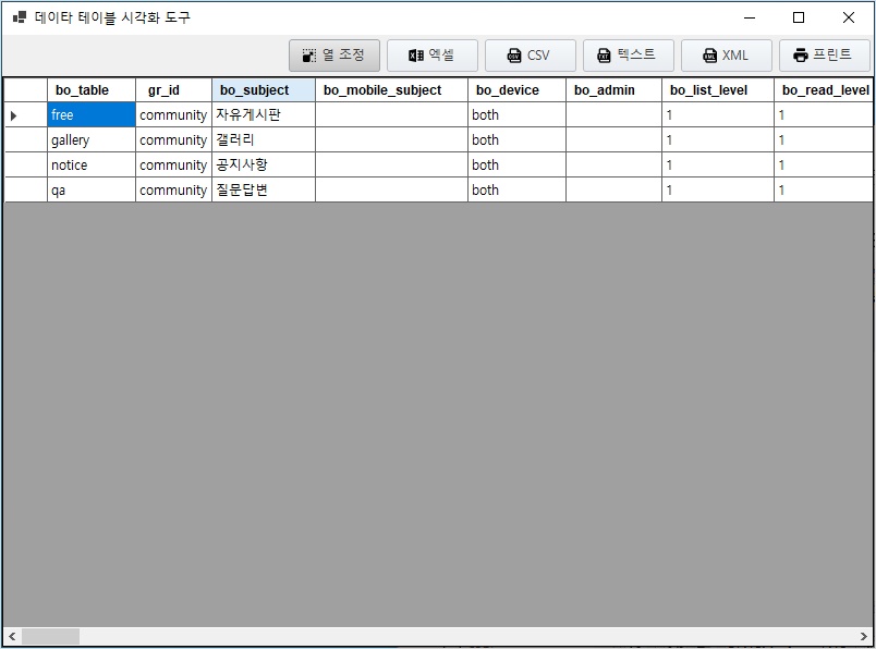 - 매크로 실행 후 속성창의 질의 데이터를 클릭하면 데이터 테이블 시각화 도구가 실행됩니다.