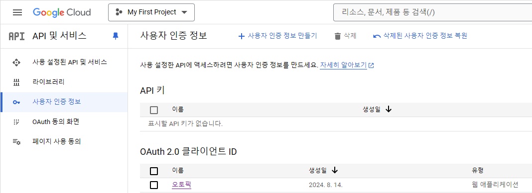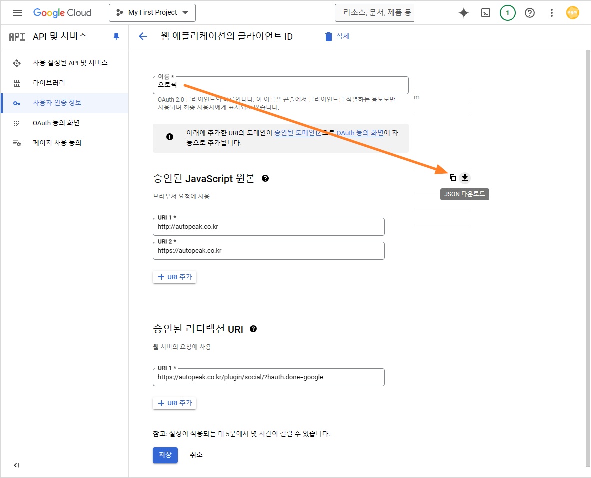 먼저 구글 API를 사용하기 위한 클라이언트 보안 키를 다운로드 받아야 합니다.
