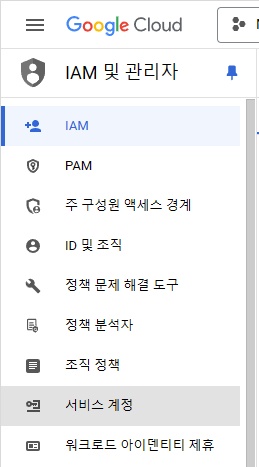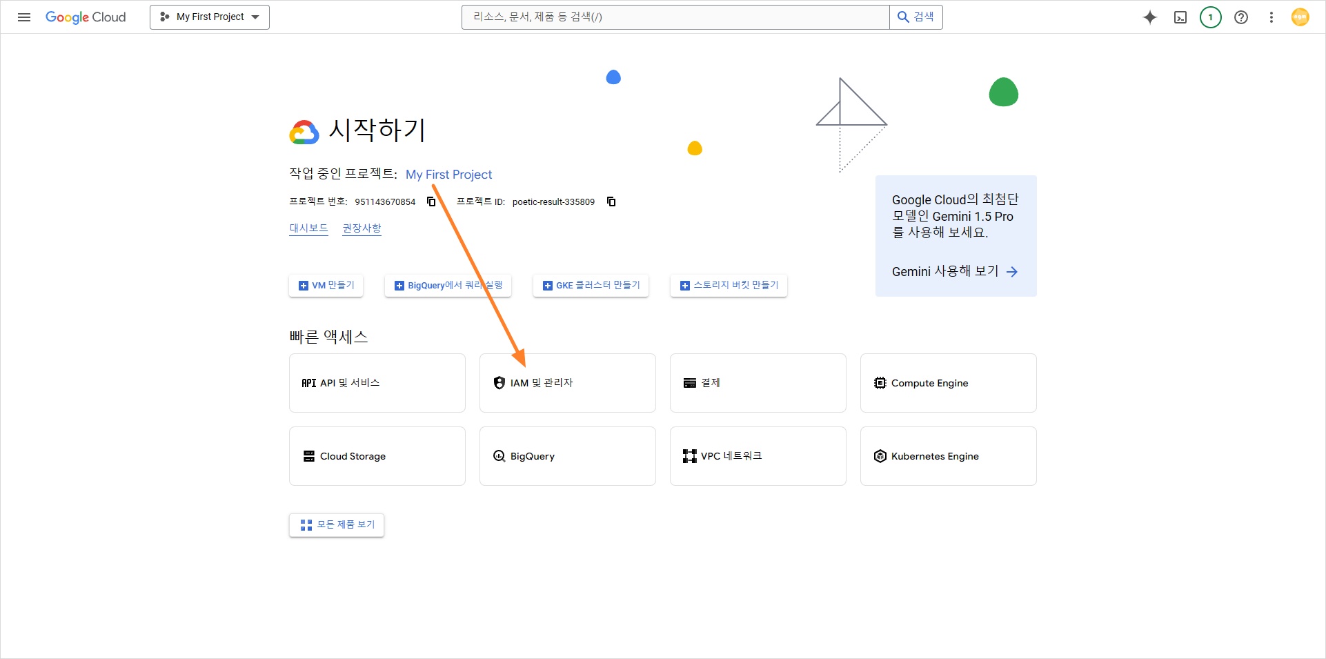 프로젝트에서 IAM 및 관리자를 클릭하세요.