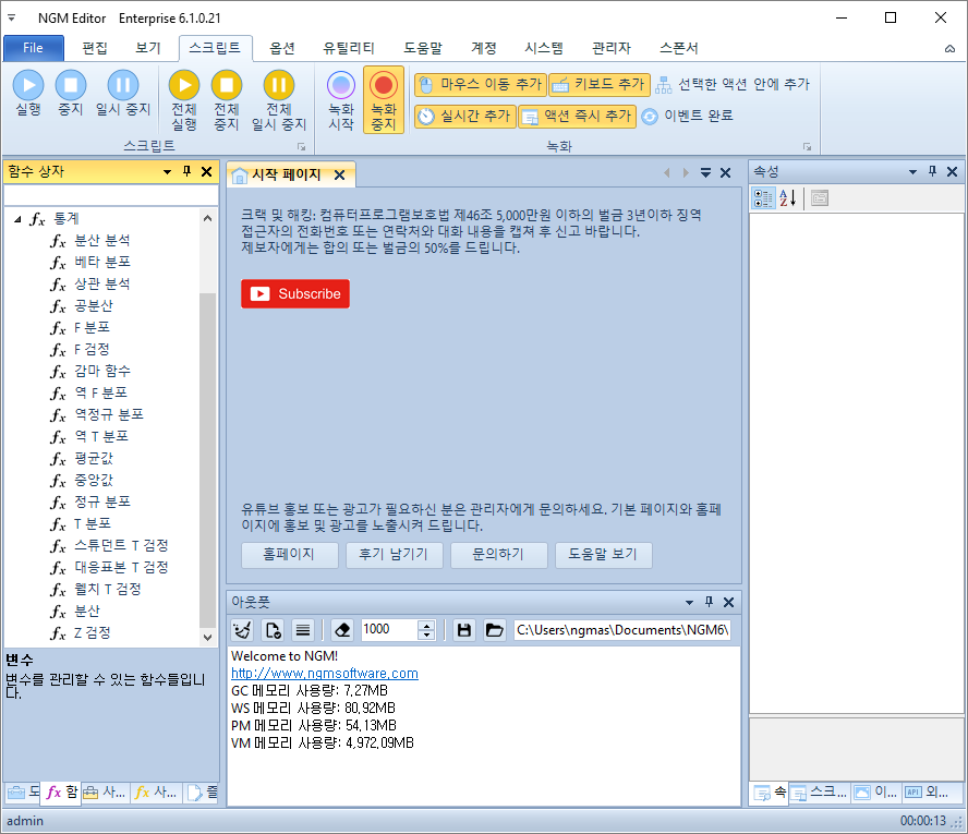 #엔지엠매크로 #NGMsoftware #매크로 #RPA #중앙값 #Median #평균값 #Mean #통계함수 #자동화매크로 #수학함수