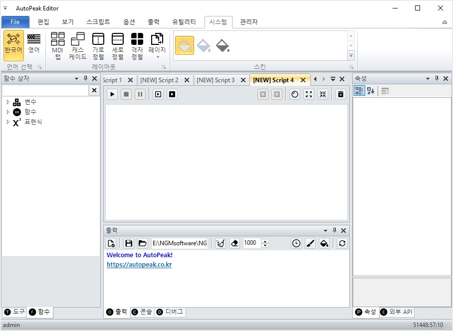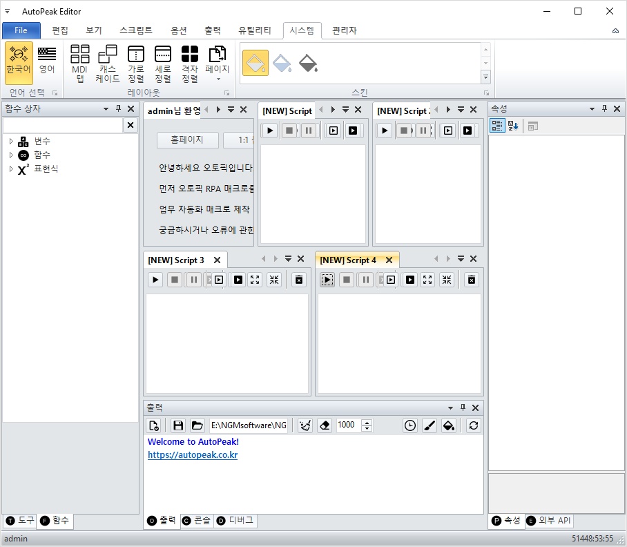 테스트를 위해 스크립트를 4개 열어두었습니다.