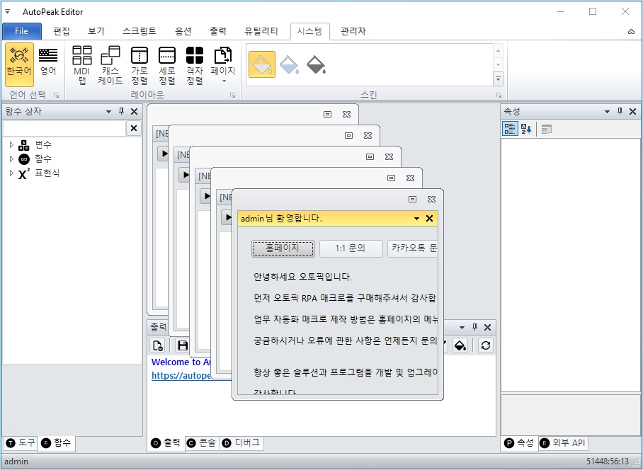 오토픽 매크로 에디터의 시스템 메뉴는 업무 자동화에 대한 내용은 아닙니다.