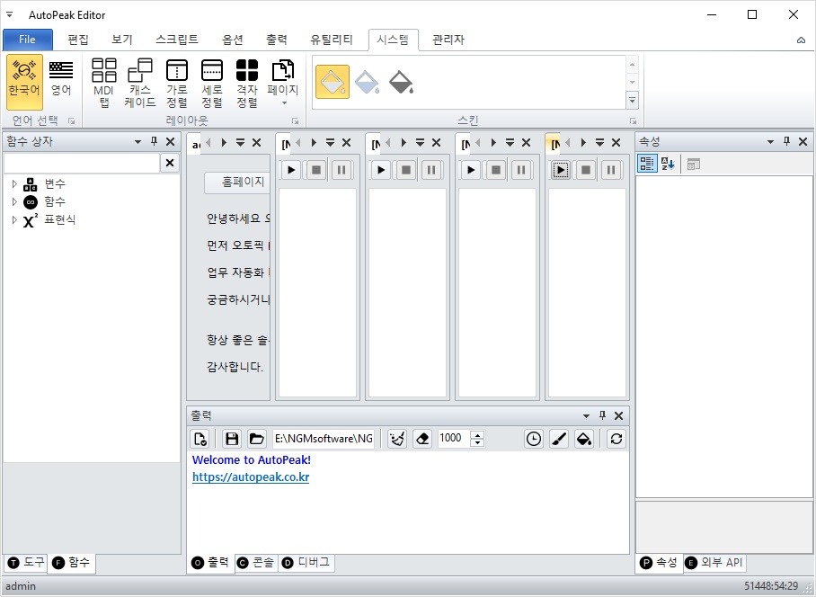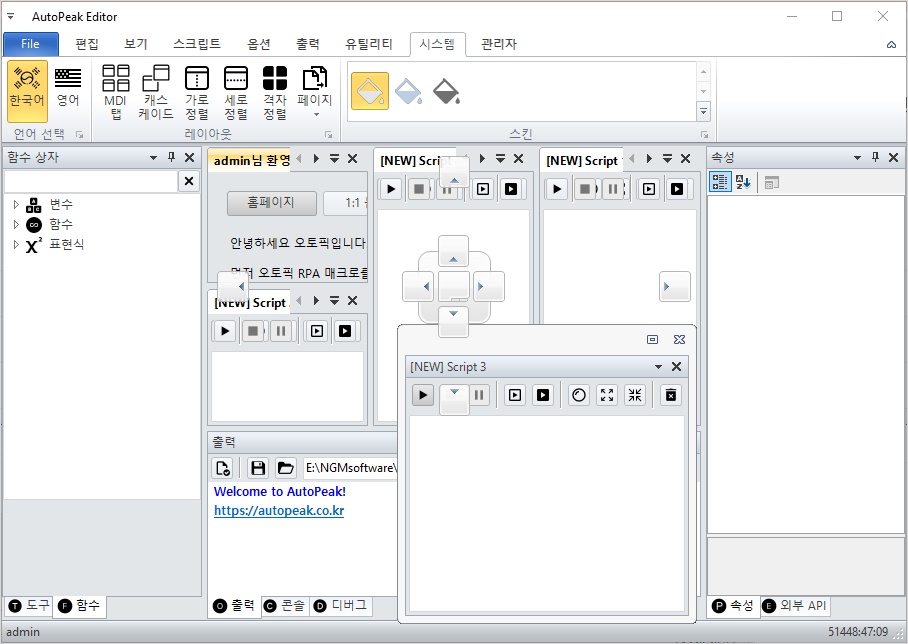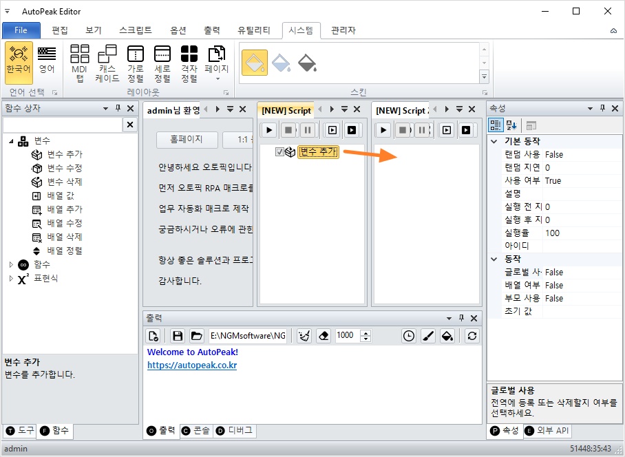 오토픽 에디터를 실행하고, 상단 우측에 시스템 탭을 클릭해보세요.