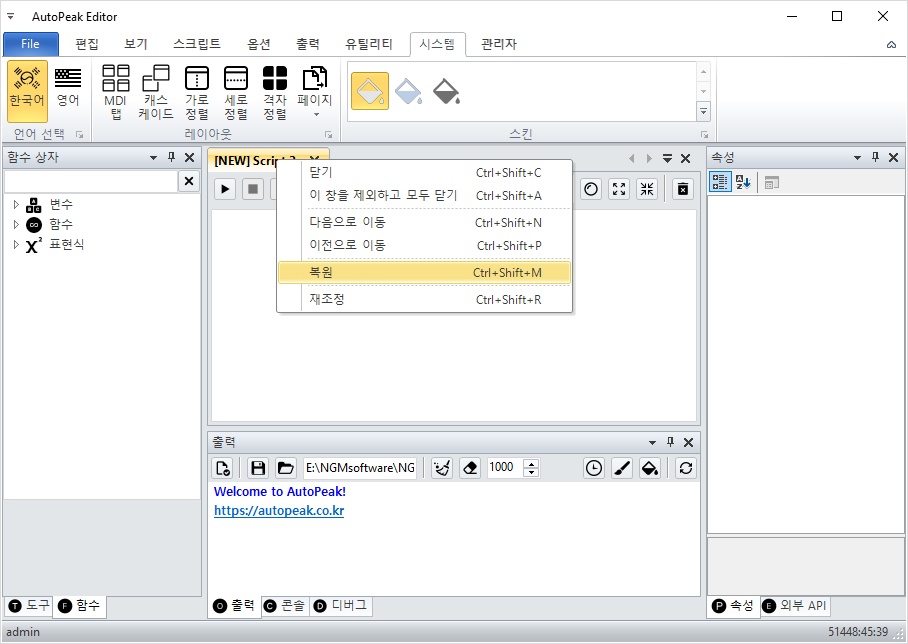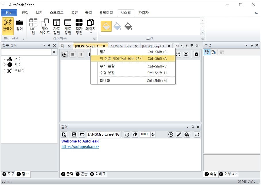 참고로, 스크립트의 타이틀에서 우클릭하면 아래와 같은 콘텍스트 메뉴가 표시됩니다.