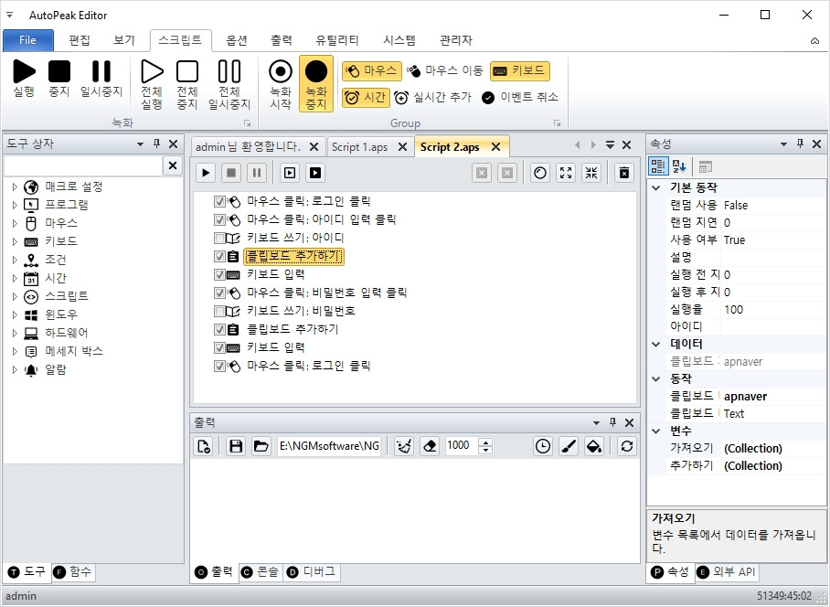오토픽 매크로에서는 클립보드 기능과 키보드 입력 액션을 조합해 손쉽게 구현할 수 있습니다.