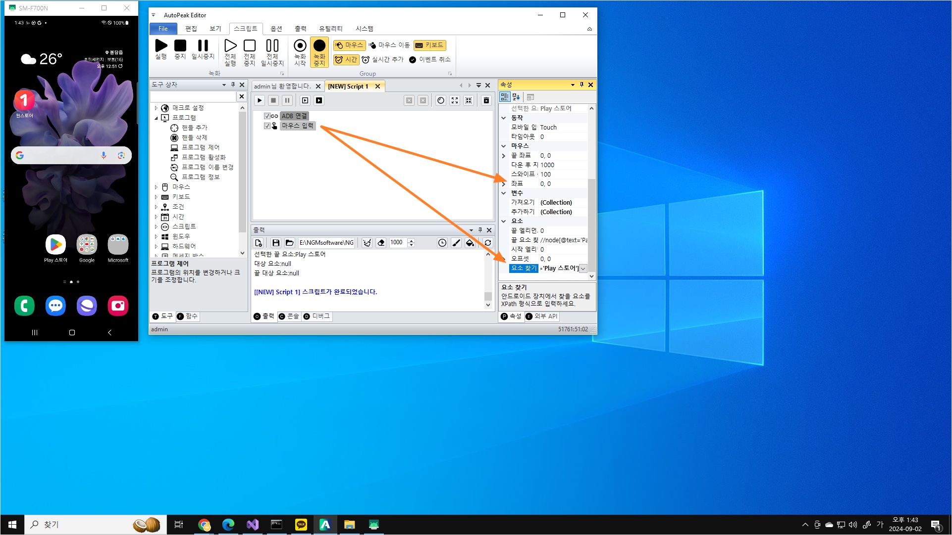 NGMsoftware의 오토픽(AutoPeak) 매크로 에디터를 활용하면, 안드로이드 환경에서도 동일하게 클릭/입력 동작을 기록하고 자동화할 수 있습니다.