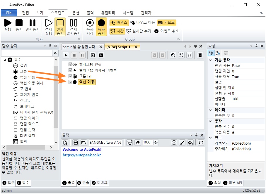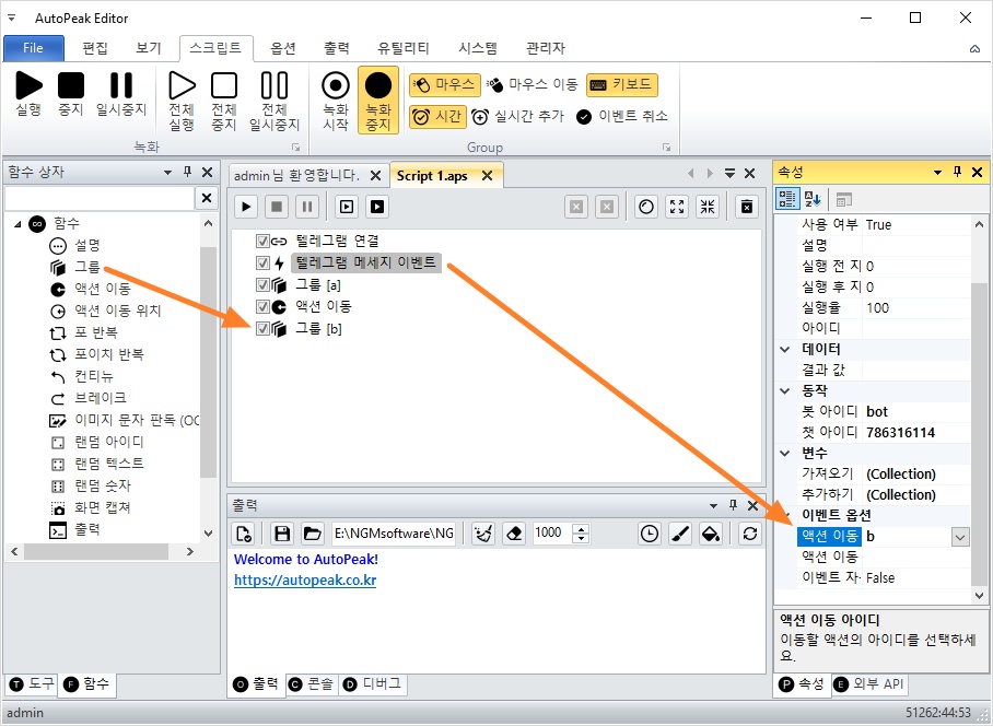 - 오토픽이 메시지를 감지 → 이벤트 발동 → 그룹 b로 이동