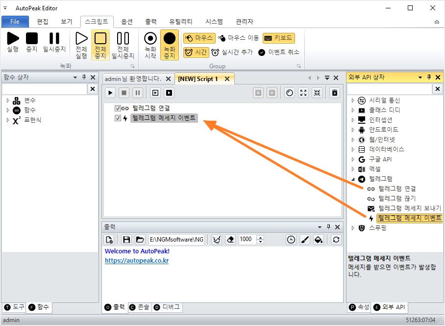 텔레그램 API를 이용하면 오토픽 에디터 및 플레이어를 제어할 수 있는데요. 이번 글에서는 텔레그램 메시지 이벤트를 중심으로 매크로 제작 과정을 살펴보겠습니다.