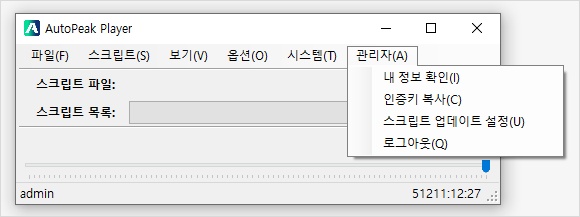 - 오토픽 플레이어 실행 → 관리자 메뉴 → 스크립트 업데이트 설정