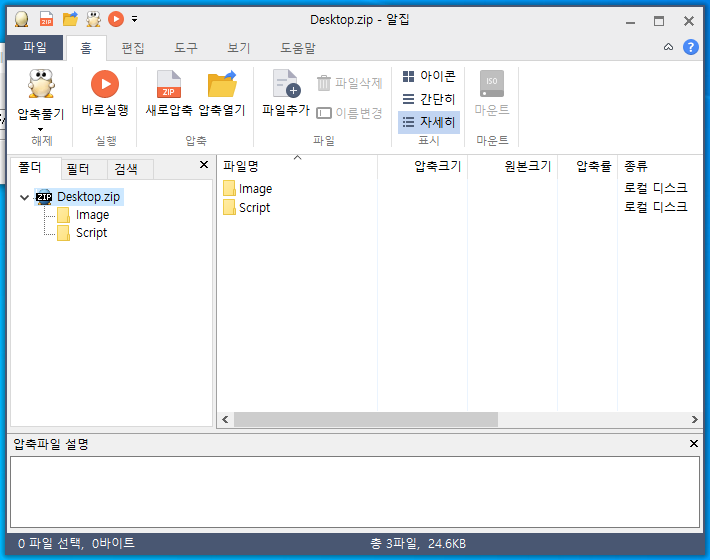 스크립트 배포를 위해 폴더를 압축할 때, 반드시 UTF-8 인코딩 설정을 권장합니다.