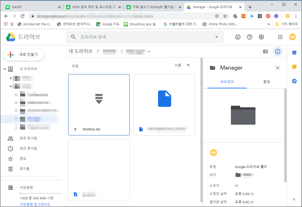 구글 크롬을 실행하고 구글 드라이브에 로그인 하세요. 압축한 파일을 드래그 앤 드롭으로 구글 드라이브에 추가하세요. 아래 그림처럼 압축 파일이 업로드 됩니다.