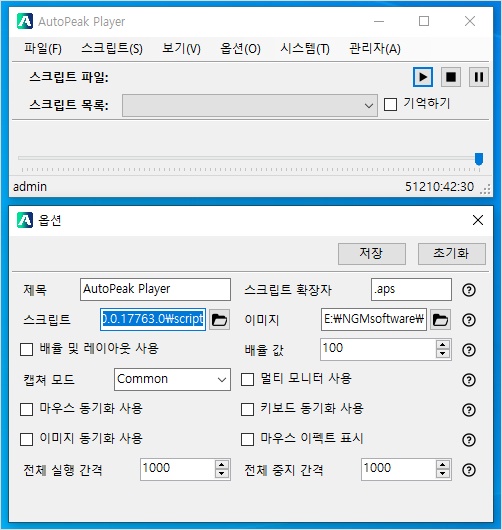 - 오토픽 에디터/플레이어 옵션에서 스크립트 및 이미지 폴더를 네트워크 드라이브로 지정