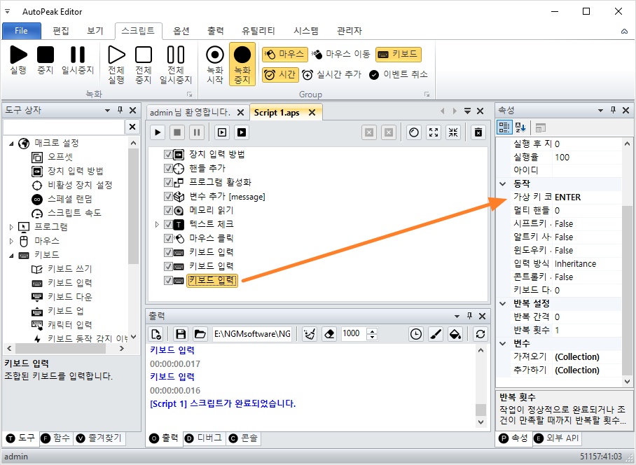 지금 비활성 모드로 매크로를 제작하고 있기 때문에 스크립트의 가장 위에 입력 방식을 먼저 설정 해줄께요.