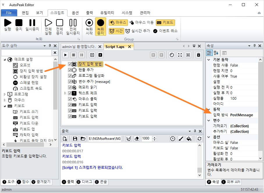 - 입력 방식 → PostMessage 설정 (스크립트 맨 위에서 설정)