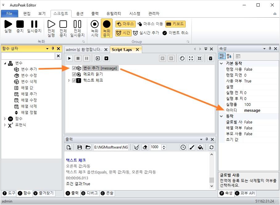 메모리 읽기와 변수, 텍스트 체크, 마우스/키보드 입력 액션을 조합하면 반복 작업을 완전히 자동화할 수 있습니다.