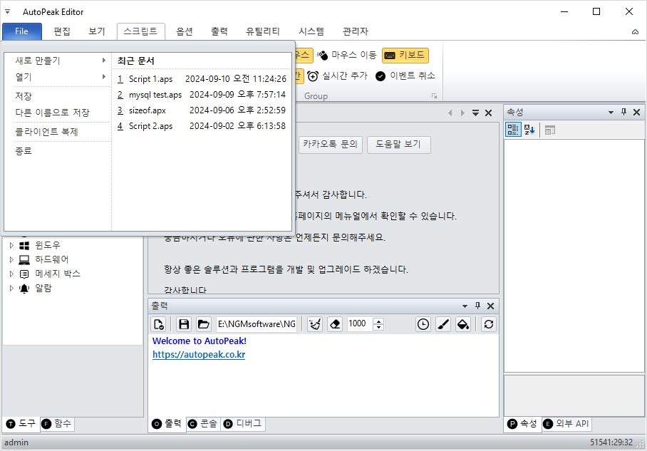 - 13. 속성창 컨텍스트 메뉴 버그 수정.