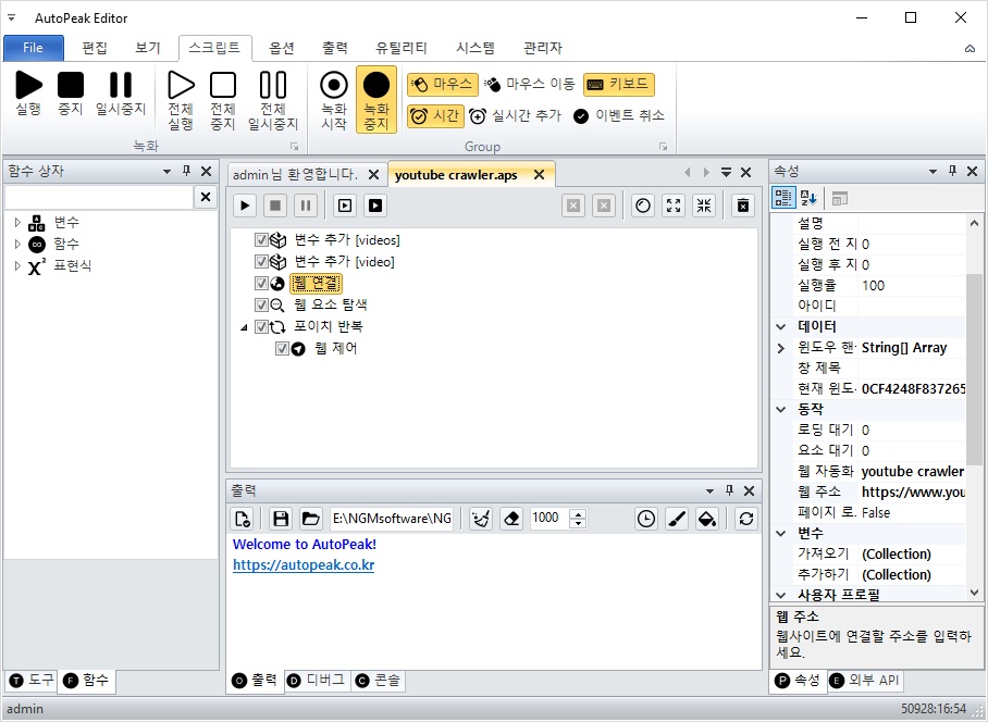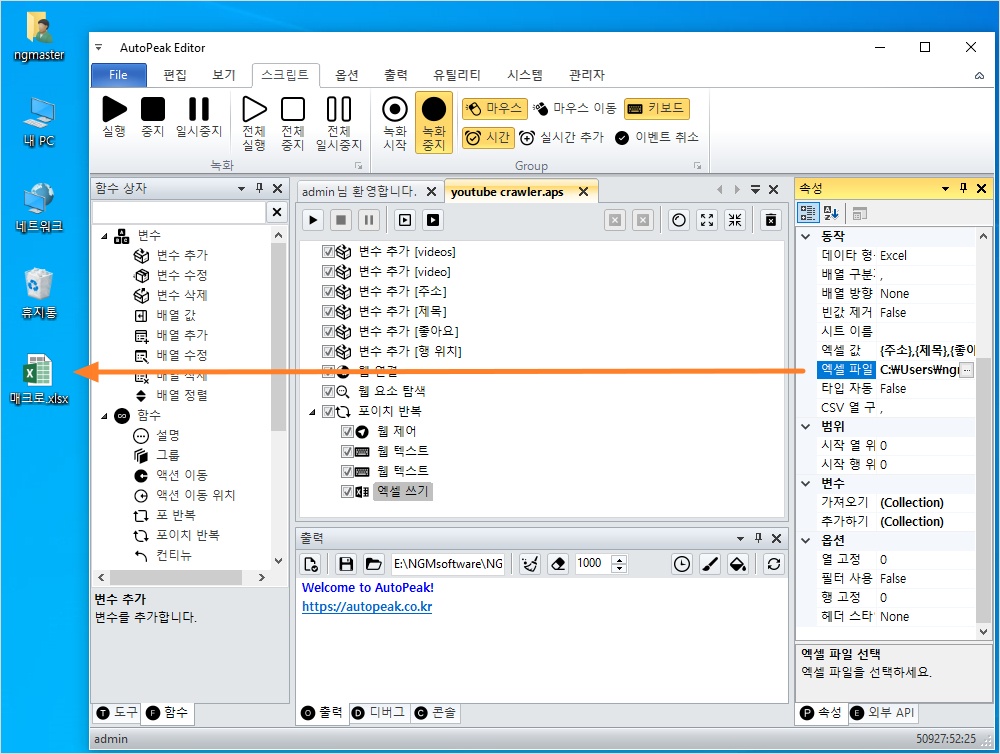 #유튜브크롤러 #데이터수집 #RPA매크로 #AutoPeak #오토픽 #웹자동화 #엑셀자동화 #크롤링