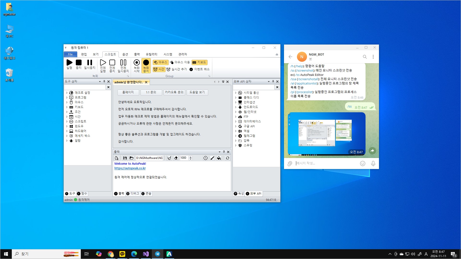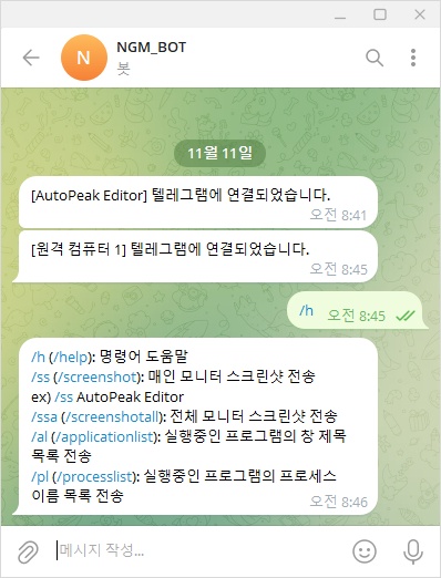 - 오토픽 매크로는 텔레그램 봇 API 연동을 통해 원격 제어 가능