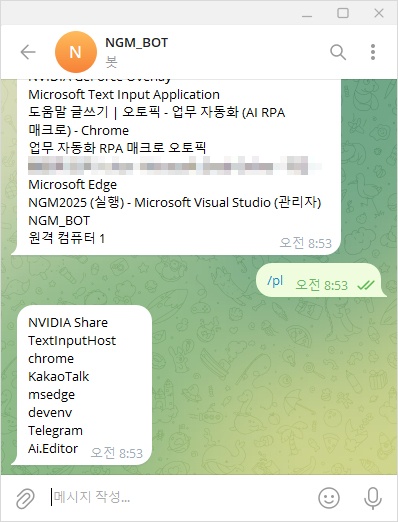 - /pl (/processlist): 실행중인 프로그램의 프로세스 이름 목록 전송