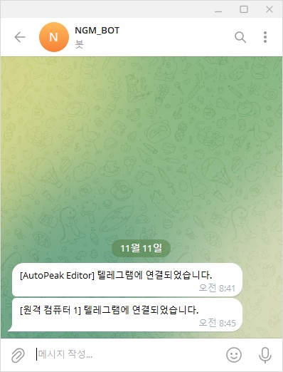 아래와 같이 텔레그램에 안내 메세지가 도착합니다.