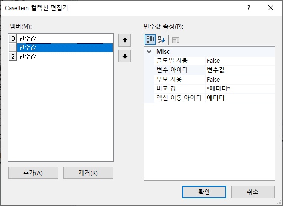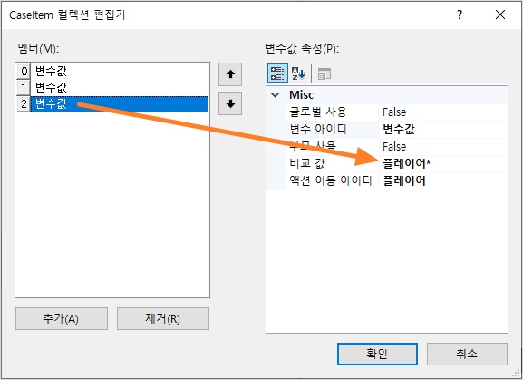 두번째는 에디터와 같은지 비교하고, 세번째는 플레이어와 같은지 비교하여 각각의 그룹 액션으로 루틴을 이동시킵니다.