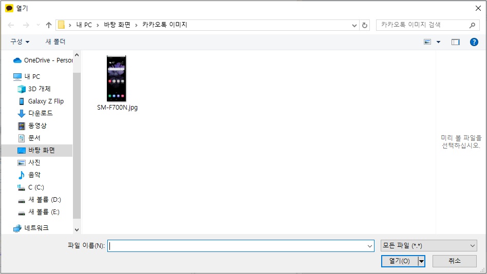 카카오톡에 전송할 이미지를 선택할 수 있는 윈도우 탐색기가 표시됩니다.