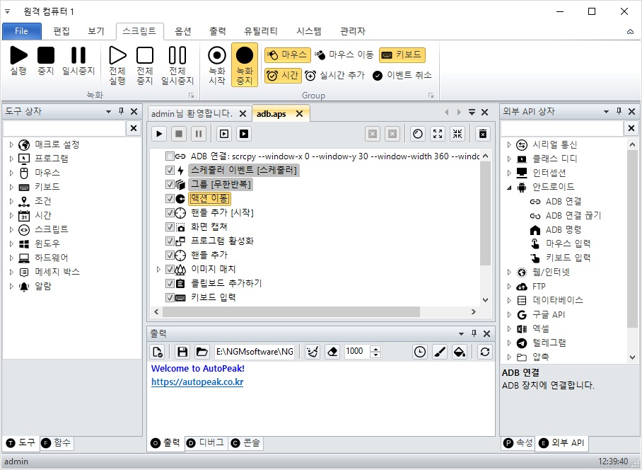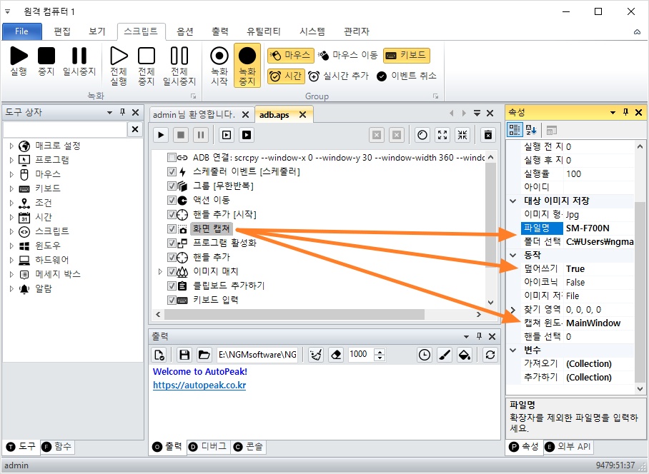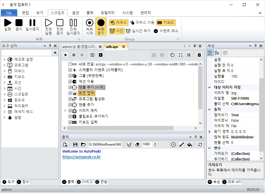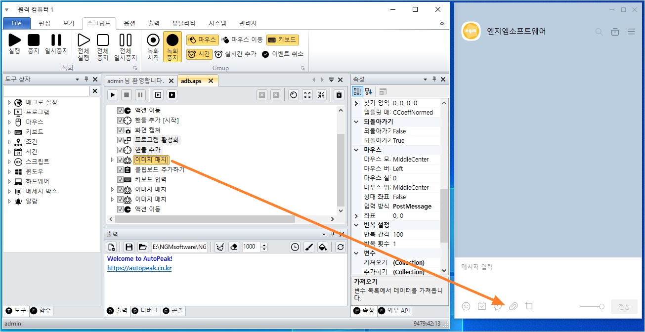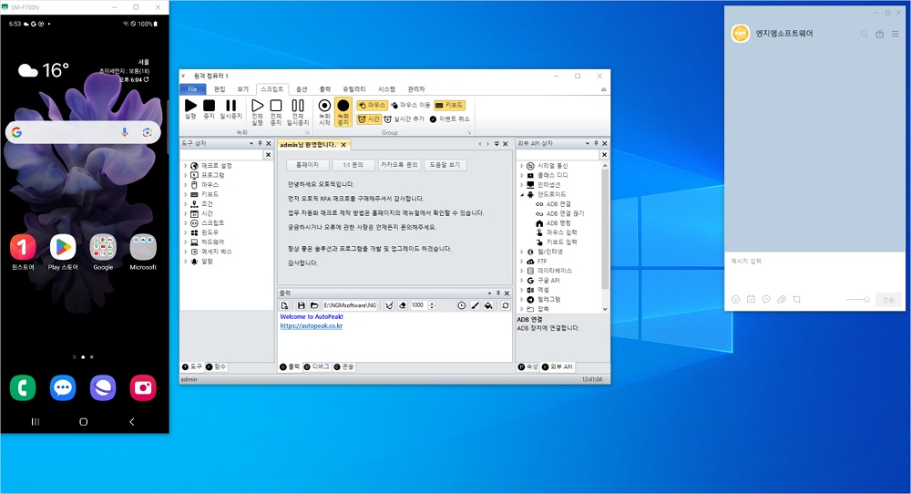 오토픽 매크로, AutoPeak, 핸드폰 화면 캡처, 카카오톡 자동 전송, 안드로이드 미러링, ADB SCRCPY, RPA 매크로, 업무 자동화, 자동 이미지 전송, 매크로 예제