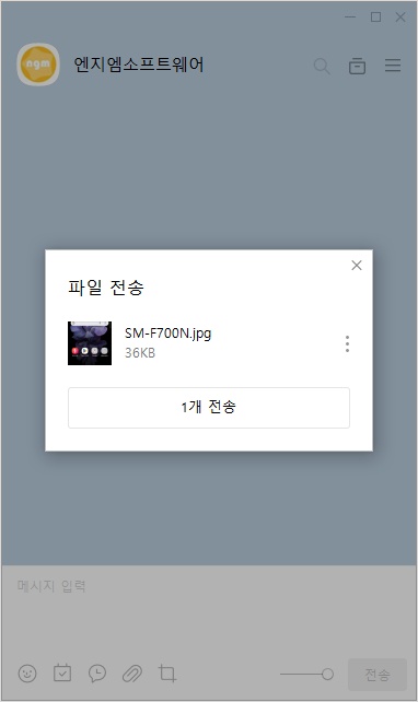 파일을 선택하면 파일 전송 버튼이 표시됩니다. 이것까지 클릭해야 대화방에 이미지를 전송하게 됩니다.