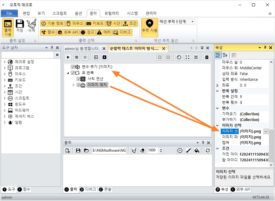 그리고, 이미지 매치에서 이미지 파일명을 변수명으로 설정하면 매크로가 실행될 때 자동으로 변수 값을 가져와서 이미지를 불러옵니다.