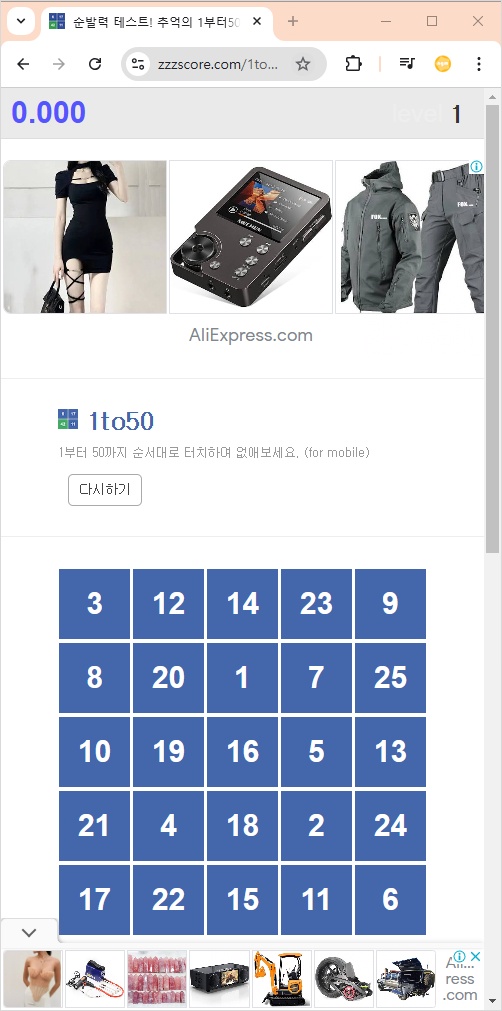 이 게임은 마우스로 숫자를 1부터 25까지 순서대로 클릭하고 다시 26부터 50까지 순서대로 클릭하는 단순한 게임입니다.