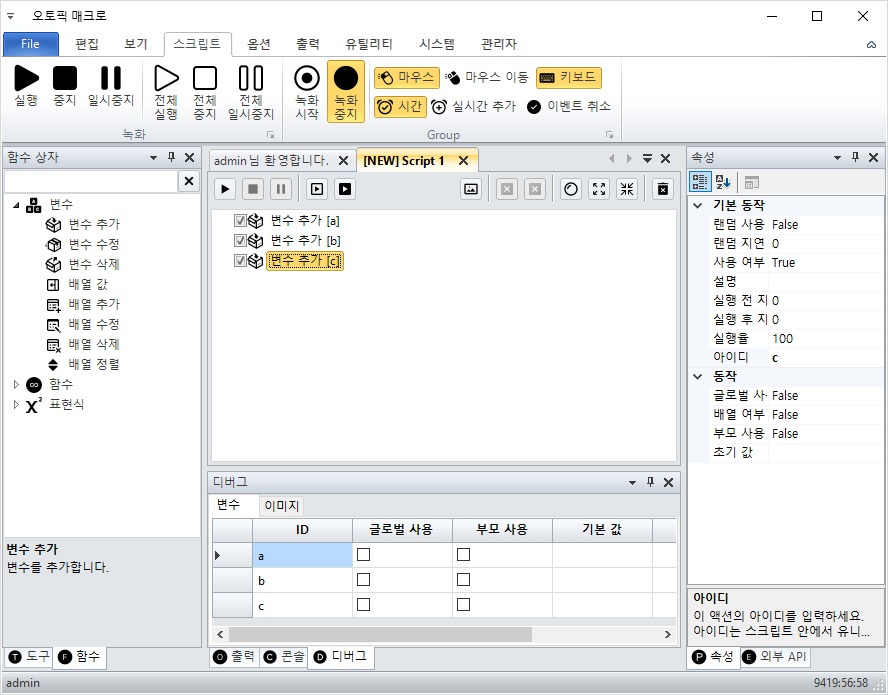 ①스크립트에서 액션을 한단계씩 실행하면서 결과를 확인할 수 있습니다.