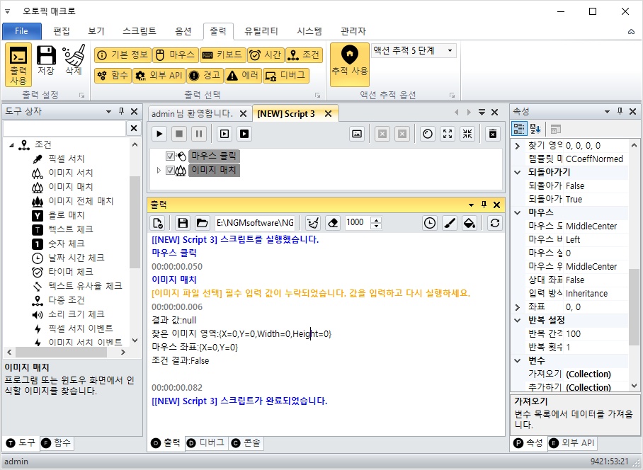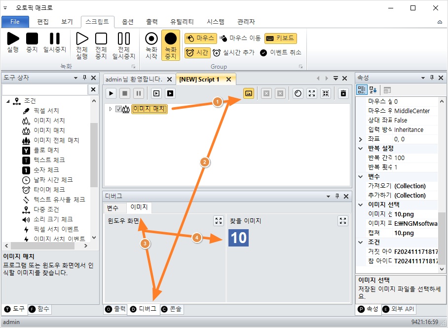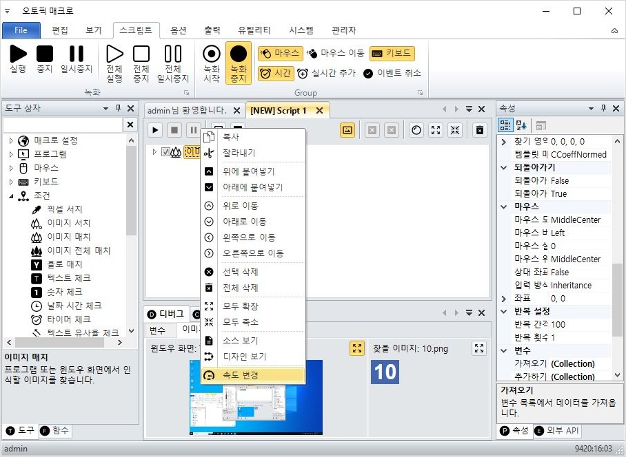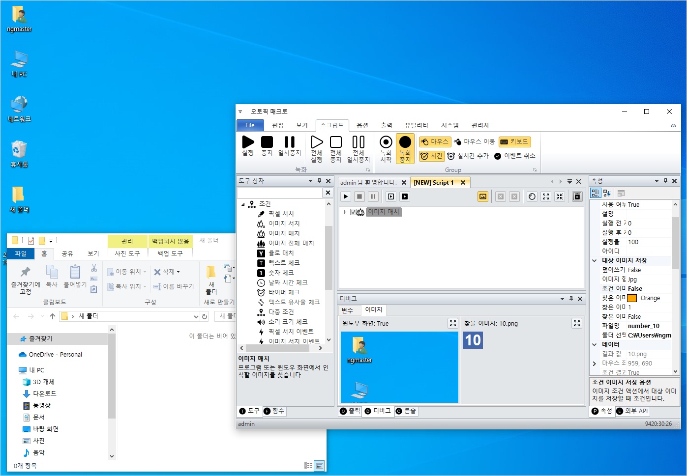 그러면, 매크로가 느리게 동작하고 이미지 조건들이 어떻게 동작하는지 조건 처리 결과가 어떻게 되는지 확인할 수 있습니다.