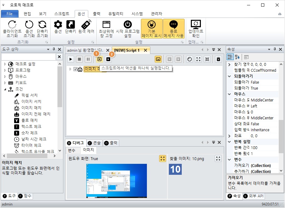 이미지 조건을 확인하는 것도 중요하지만, 변수 값으로 조건을 수행하는 액션들도 많이 존재합니다.