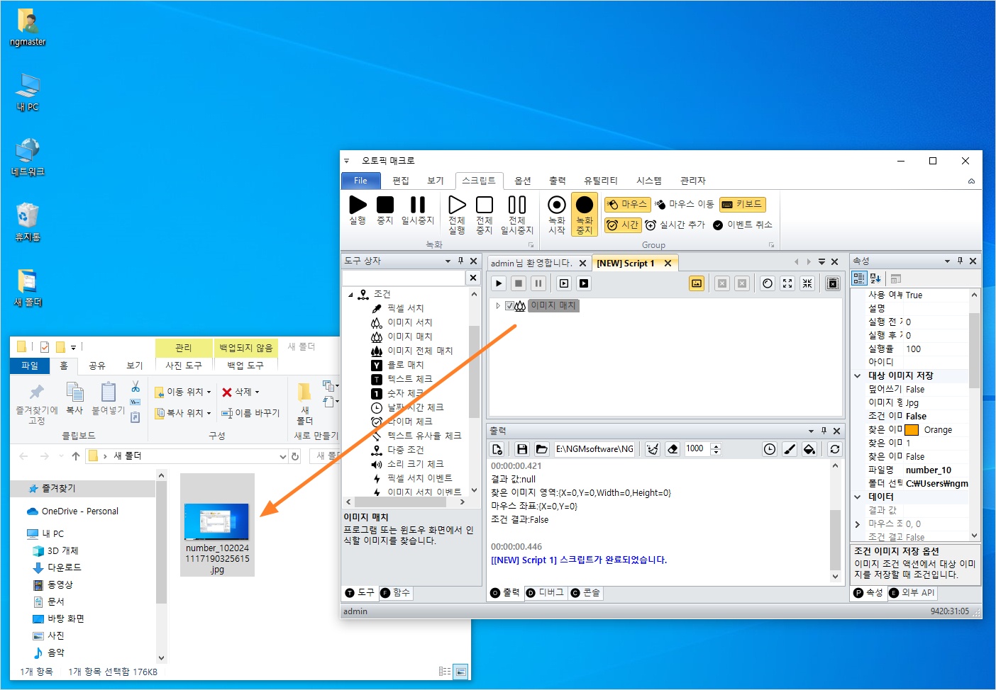 매크로를 실행하면 현재 윈도우 화면에 숫자 10이 없기 때문에 이미지가 윈도우 바탕 화면에 저장됩니다.